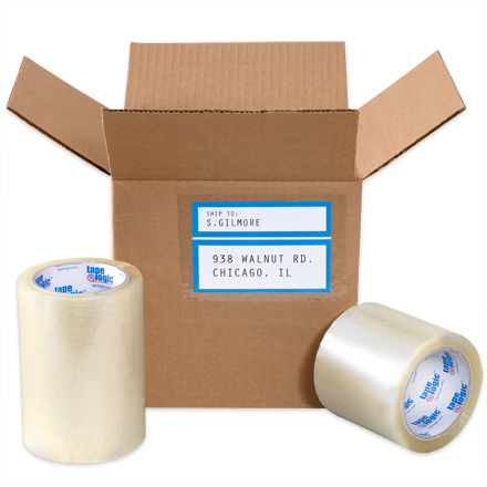 Extra wide roll covers most labels, securely to packages, in a single application.
